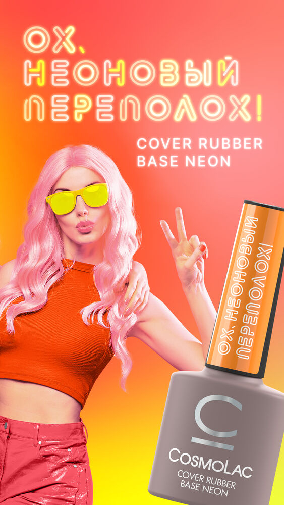 Ох, неоновый переполох! Новая коллекция ярких неоновых камуфлирующих баз Cover Rubber Base Neon - сочетание сочных, летних оттенков с эффектом полупрозрачности. База хорошо камуфлирует ногтевую пластину и при этом сохраняет эффект глубины. Преимущества для профи: густая консистенция; не течет, держится в капле; самовыравнивается; плотно камуфлирует ноготь; прочная сцепка с натуральным ногтем; неоновый оттенок и желейный эффект; Преимущества для клиента: супермодный образ, трендовые летние оттенки; супербыстрый маникюр; суперстойкое, яркое долговременное покрытие до 4-х недель; минимальная нагрузка на ногтевую пластину; не требует нанесения гель-лака;