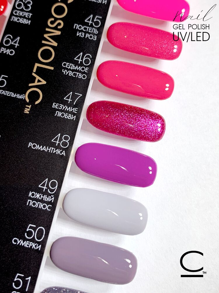 Каждый цвет нашей коллекции подбирается с душой и создается под особым контролем. Наши лаки не «капризные» в нанесении и не требуют высоких навыков в работе, обладают высокой пигментацией и эластичной текстурой. Легко перемешиваются между собой, что позволит при желании самостоятельно создать новые и градиенты. Сушить 30/120 сек в led/uv лампе. Рекомендации: Лаки с темными пигментами рекомендуем наносить тонким слоем и не прерывать указанное время полимеризации. Насладитесь высоким качеством и широким выбором наших цветных покрытий.
