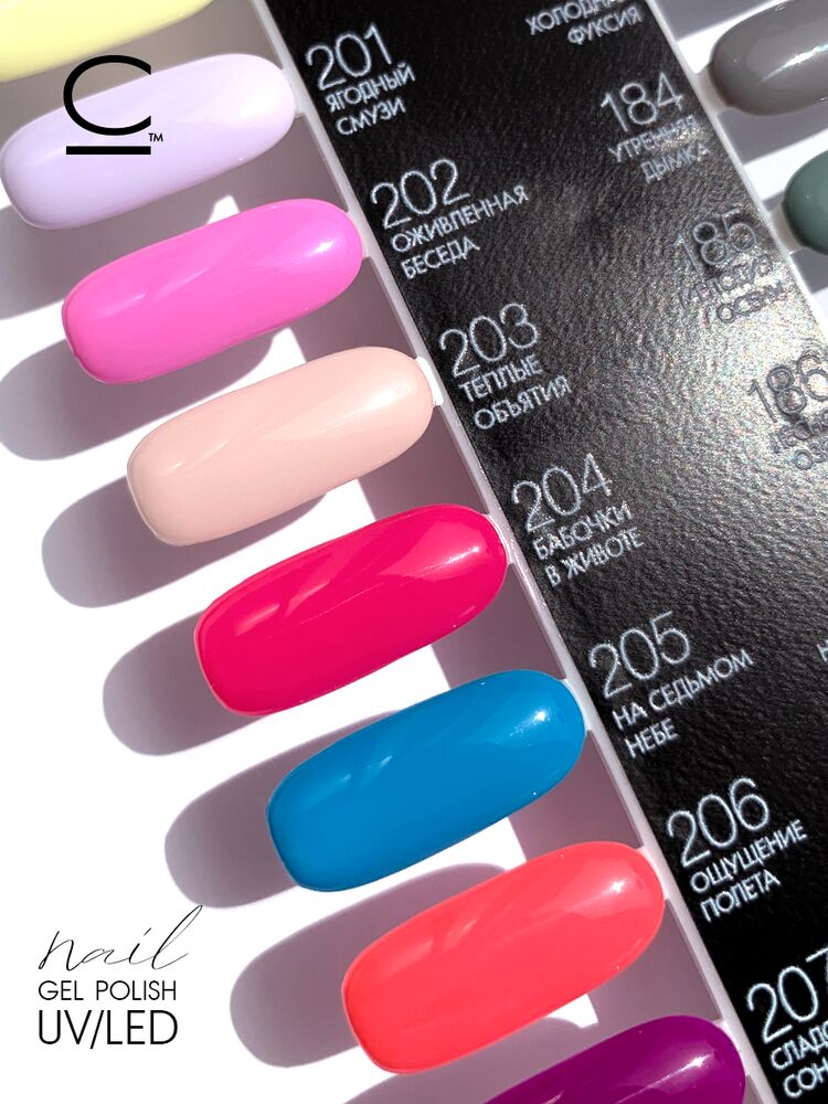 Каждый цвет нашей коллекции подбирается с душой и создается под особым контролем. Наши лаки не «капризные» в нанесении и не требуют высоких навыков в работе, обладают высокой пигментацией и эластичной текстурой. Легко перемешиваются между собой, что позволит при желании самостоятельно создать новые и градиенты. Сушить 30/120 сек в led/uv лампе. Рекомендации: Лаки с темными пигментами рекомендуем наносить тонким слоем и не прерывать указанное время полимеризации. Насладитесь высоким качеством и широким выбором наших цветных покрытий.