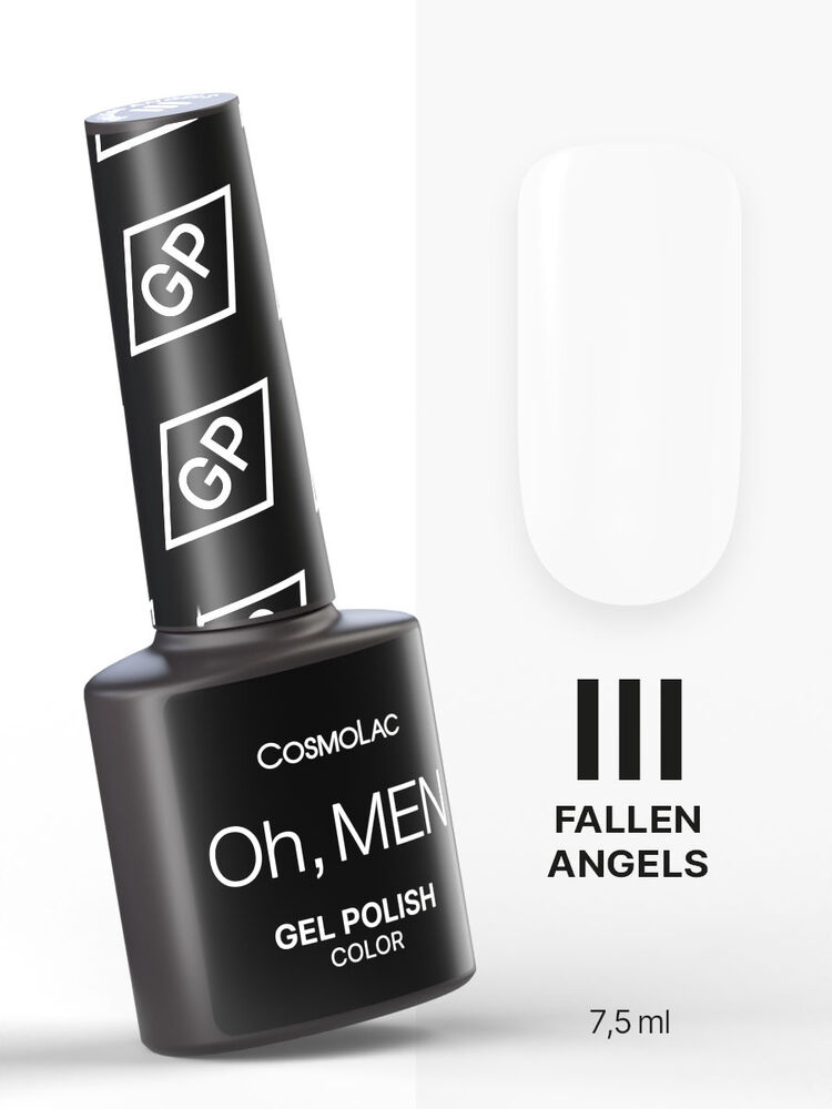 №III Fallen Angels - белоснежный. Делаем шаг навстречу переменам и представляем набор для стильного мужского маникюра! Коллекция Oh, MEN - это пять шагов к настоящему мужскому маникюру: Step 1 - праймер Step 2 - база Step 3 - гель-лак Step 4 - слайдер Step 5 - топ Шаги 3-4 можно пропускать в зависимости от мужского образа.