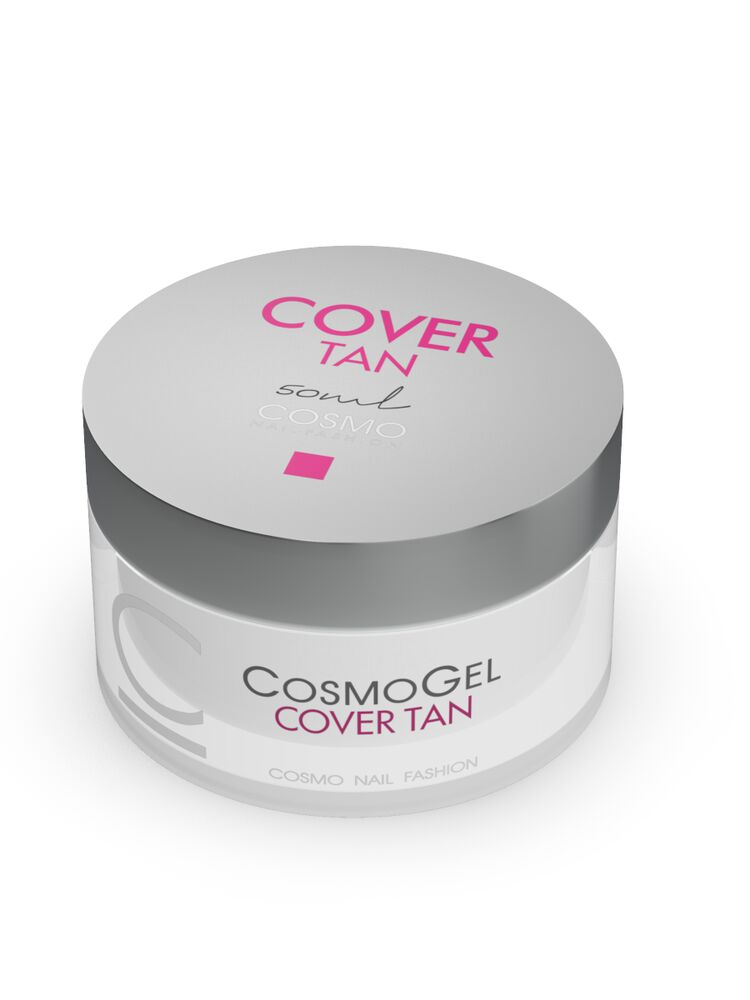 Камуфлирующий гель Cosmo Cover Tan подходит большинству оттенков кожи, имеет натуральный оттенок. – высокая степень самовыравнивания; – гипоаллергенен; – отсутствие выраженного запаха; – европейское качество продукта; – средняя густота. Полимеризация в УФ лампе – 2-3 мин. Хорошо самовыравнивается, образуя идеально гладкую поверхность. Гель отлично подходит для тонирования ногтя во время моделирования и коррекции. Используется для камуфлирования недостатков натуральной ногтевой пластины.