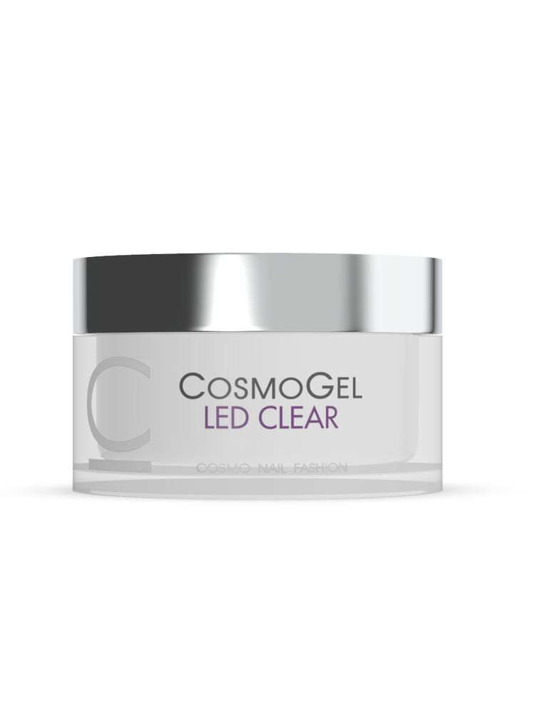 Гель Cosmo Led Clear - высококачественный твёрдый прозрачный гель. Гель предназначен для наращивания ногтей, представляет собой бесцветный гель, идеально подходит для наращивания ногтей на типсы, а также на формах. – высокая степень самовыравнивания; – гипоаллергенен; – отсутствие выраженного запаха; – европейское качество продукта; – средняя густота. Полимеризации в led-лампе или гибриде - 30 сек. Верхний слой после очистки не требует наложения геля-блеска. Гель имеет нейтральную формулу по отношению к натуральному ногтю. Высокие адгезивные свойства геля создают плотное сцепление. Формула геля позволяет исключить пожелтение натуральной ногтевой пластины. После полимеризации прозрачный. Только для профессионального использования.